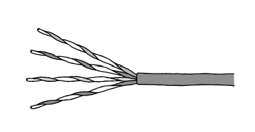 이름 그대로 두 가닥의 구리선이 한 쌍(pair)을 이루어 서로 꼬여(twisted) 있는 구조를 가지고 있습니다