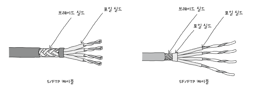 ① S/FTP 케이블: 케이블 외부는 브레이드 실드로 보호되며,