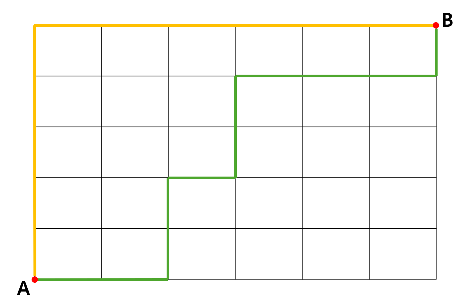 A에서 B로 갈 수 있는 서로 다른 최단 거리의 수가 결정됩니다 😯