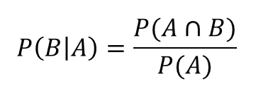 즉, A라는 조건(전제)하에 B라는 사건이 발생할 확률을 구하면 됩니다 (아래 수식)